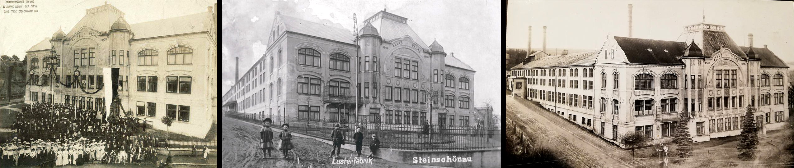Slavná historie podniku, známého i za hranicemi tehdejšího Rakouska-Uherska a později Československa, se začala psát roku 1849. Tehdy průmyslník Elias Palme založil továrnu na výrobu křišťálových a bronzových lustrů. Roku 1893, po smrti zakladatele, se výroba dostala do rukou jeho dvou synů. Ti se roku 1905 rozhodli vybudovat velkolepou secesní budovu, nesoucí v průčelí název podniku a letopočty založení. Tak vznikla továrna na lustry, nebo také sklárna, které se přezdívalo Eliáška.