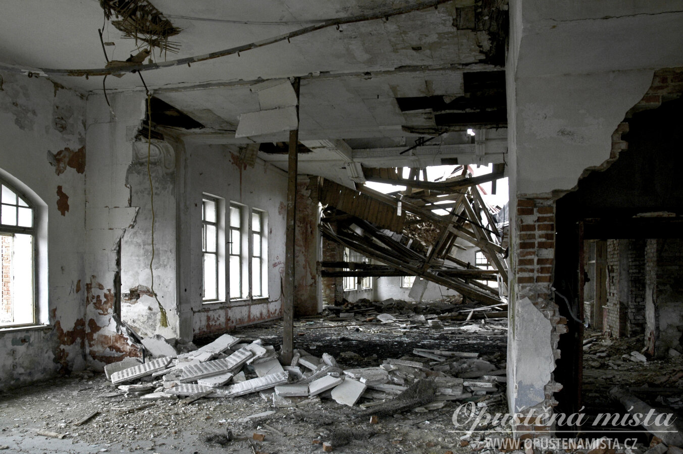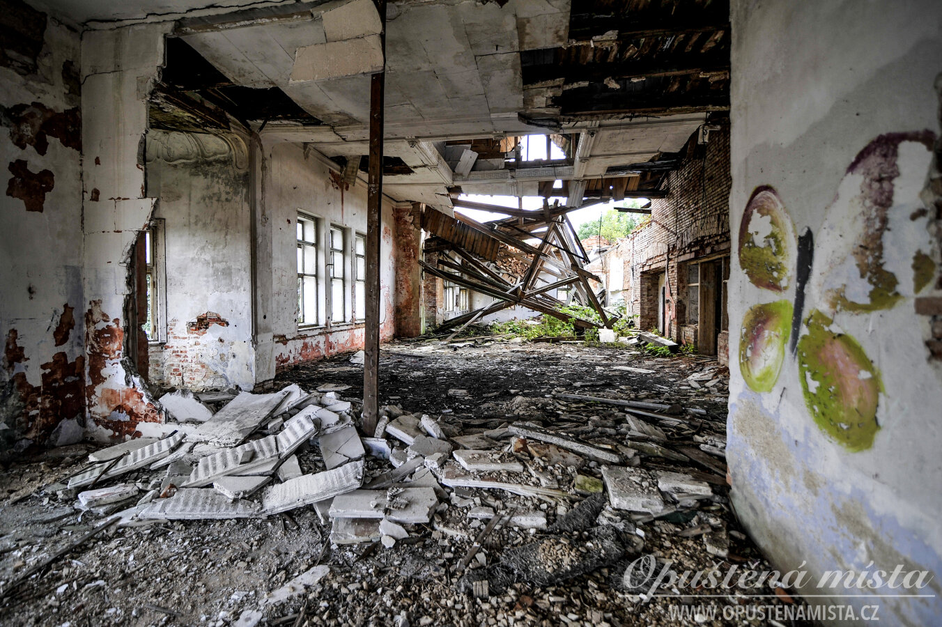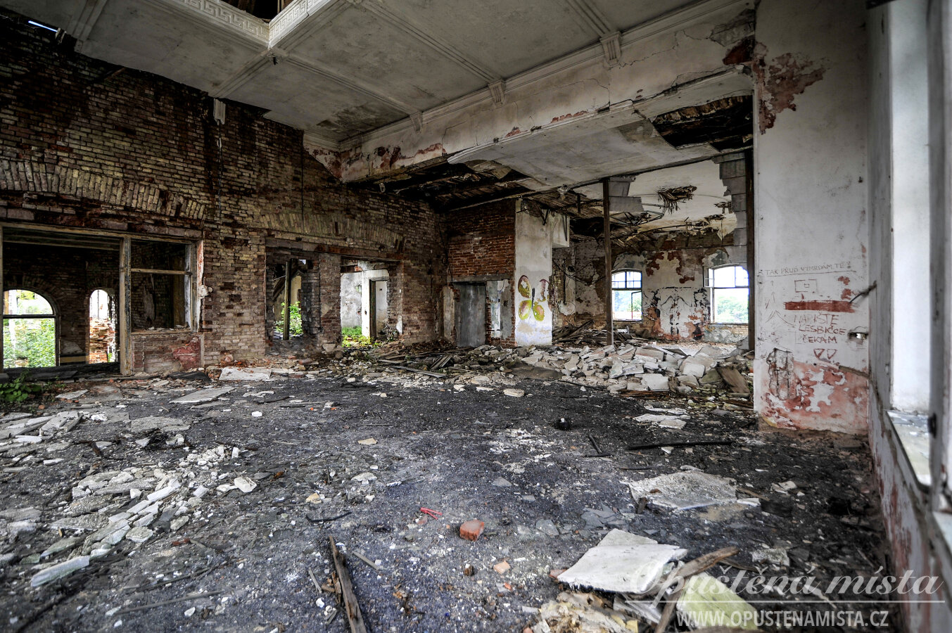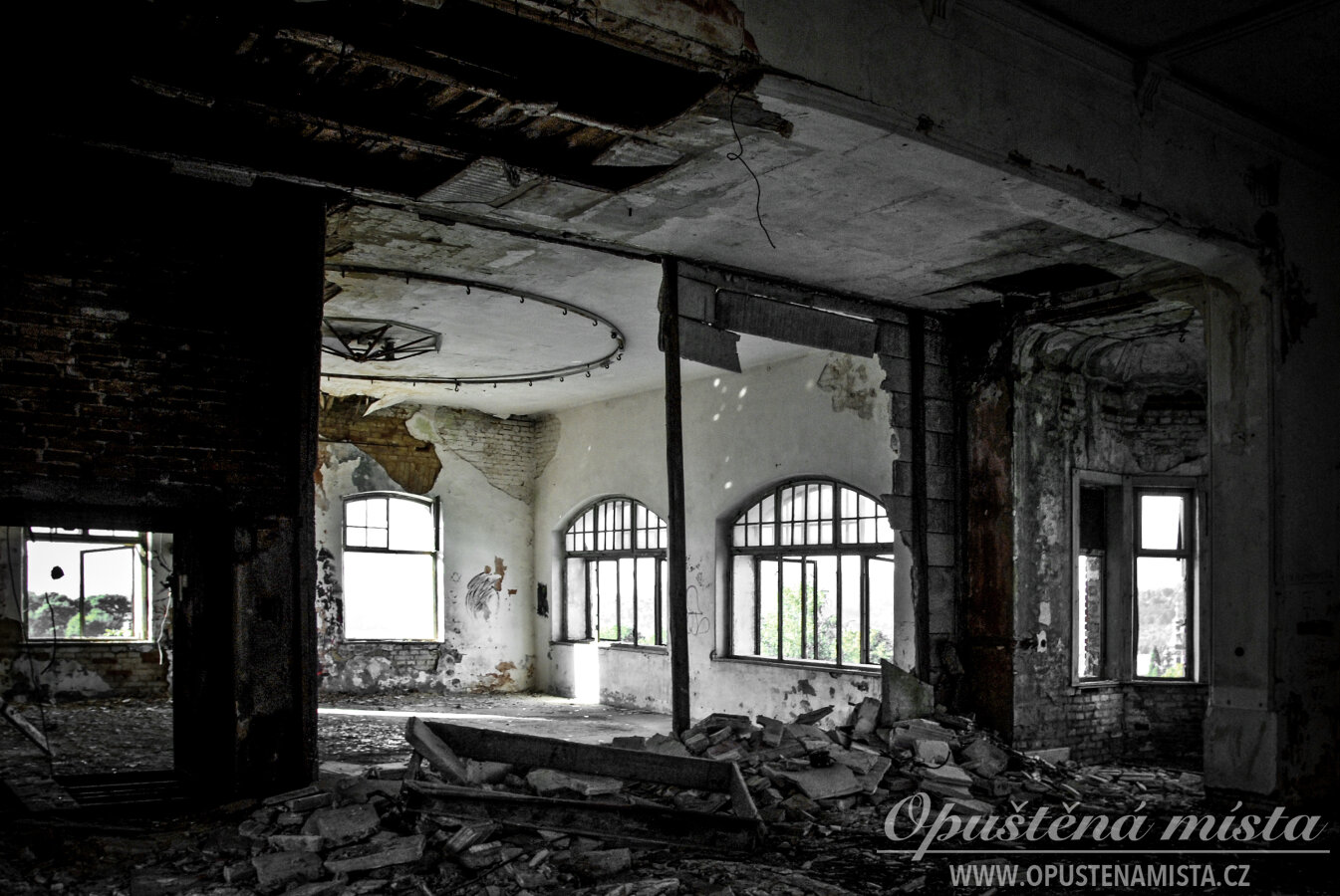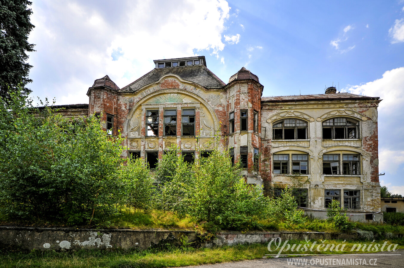 V době pořízení fotek byla hlavní secesní budova nejzachovalejší částí. Kdysi se zde nacházel velký sál se štukovou výzdobou a honosným skleněným lustrem ve středu místnosti. V současnosti se však stropy již propadly a z celé budovy zůstalo jen torzo bez střechy. Jméno na fasádě je otlučené, cihlové zdi mají opadanou omítkou a okna jsou vymlácená. Z dřívější slávy a známého jména nezůstalo téměř nic.