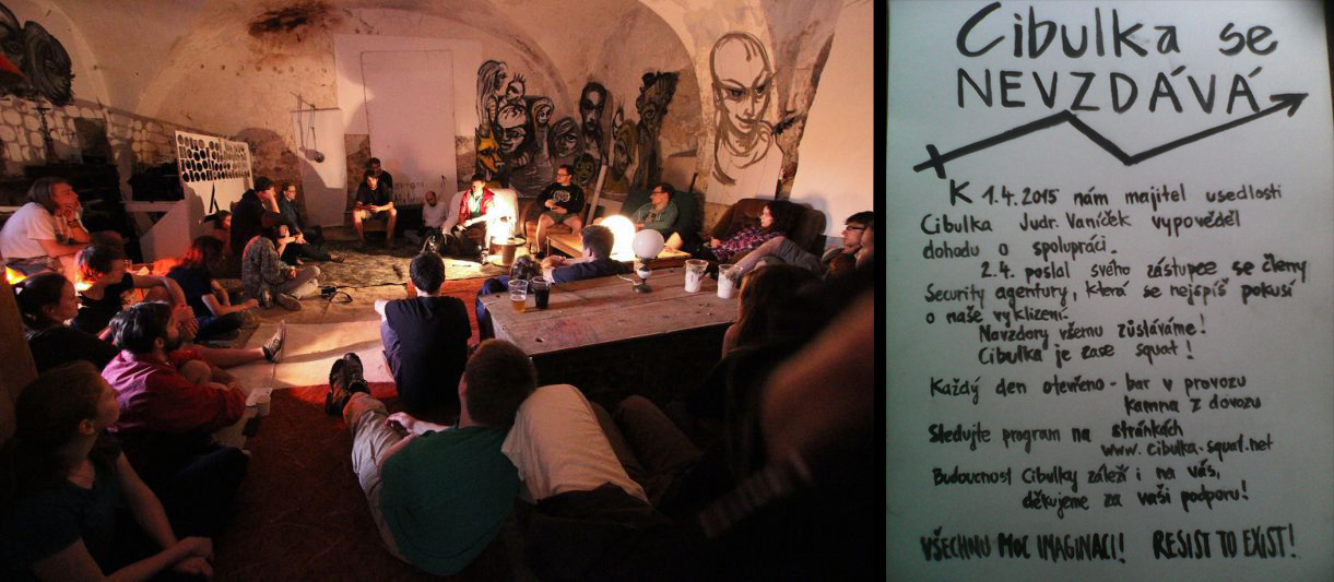 Squatting na Cibulce v roce 2014 a 2015 (zdroj: foto1 a foto2)