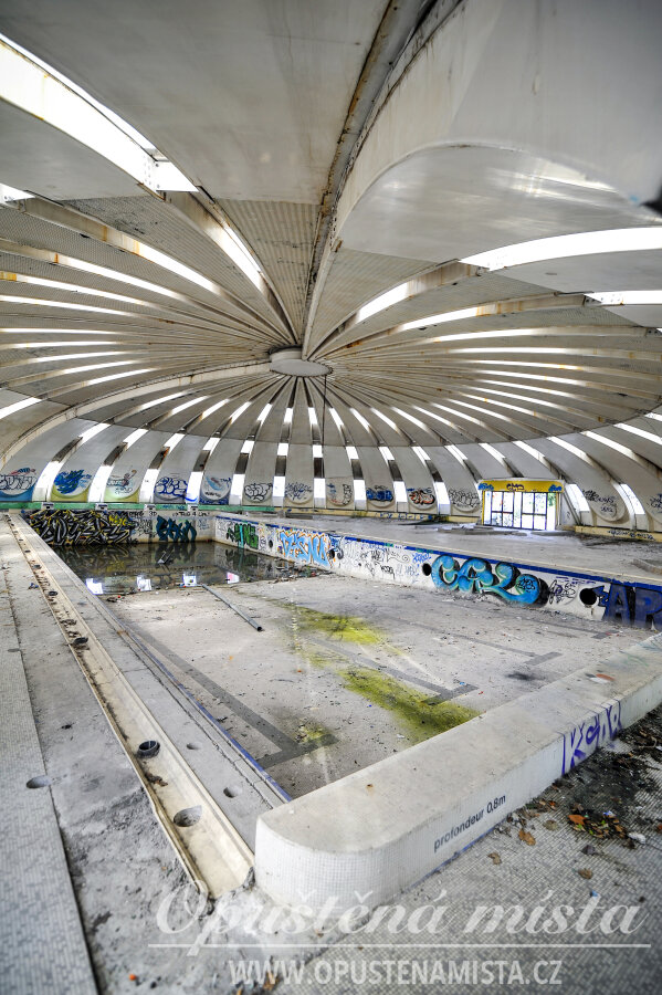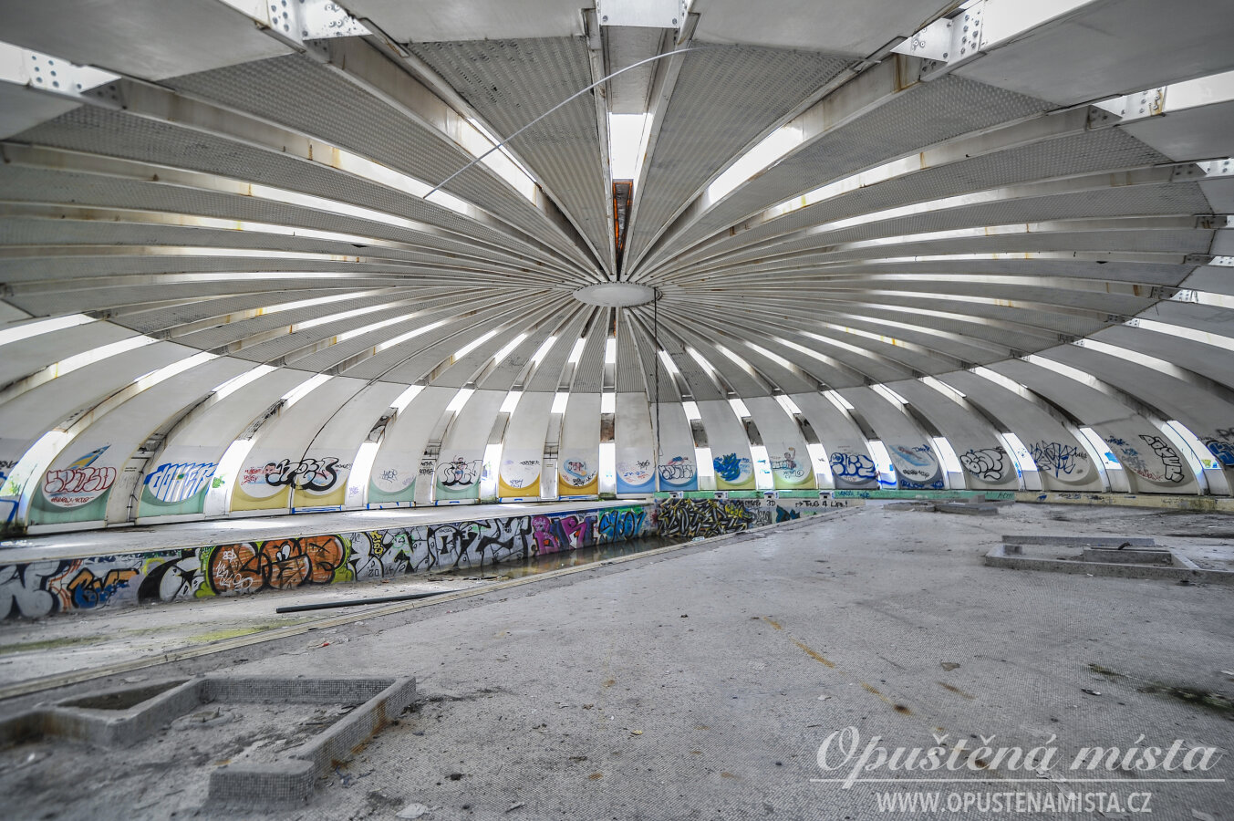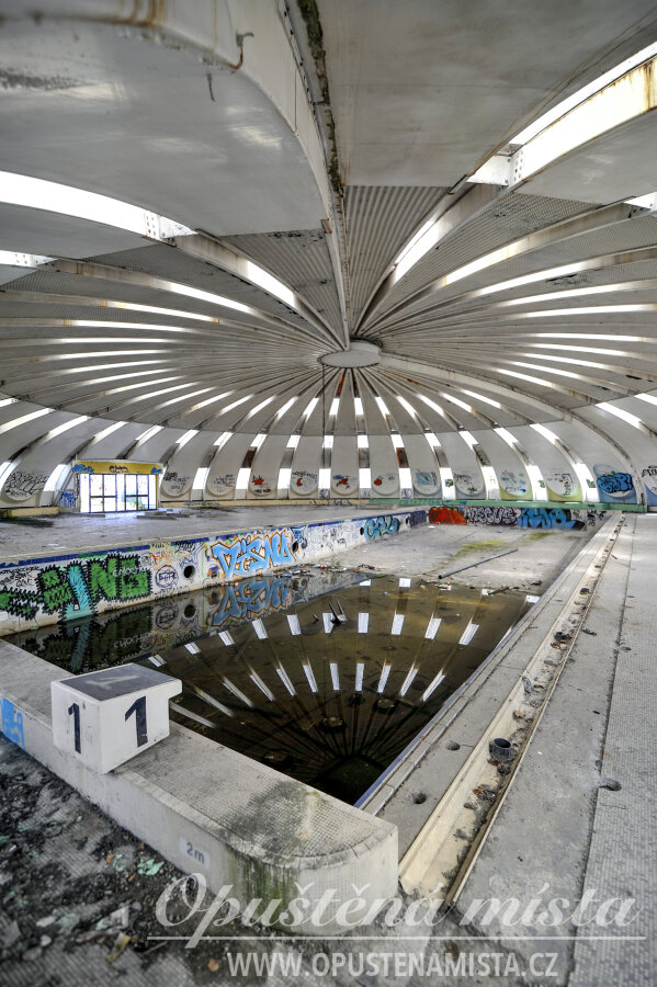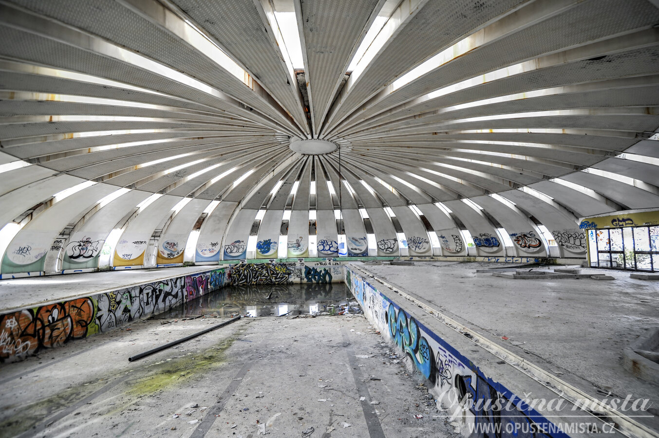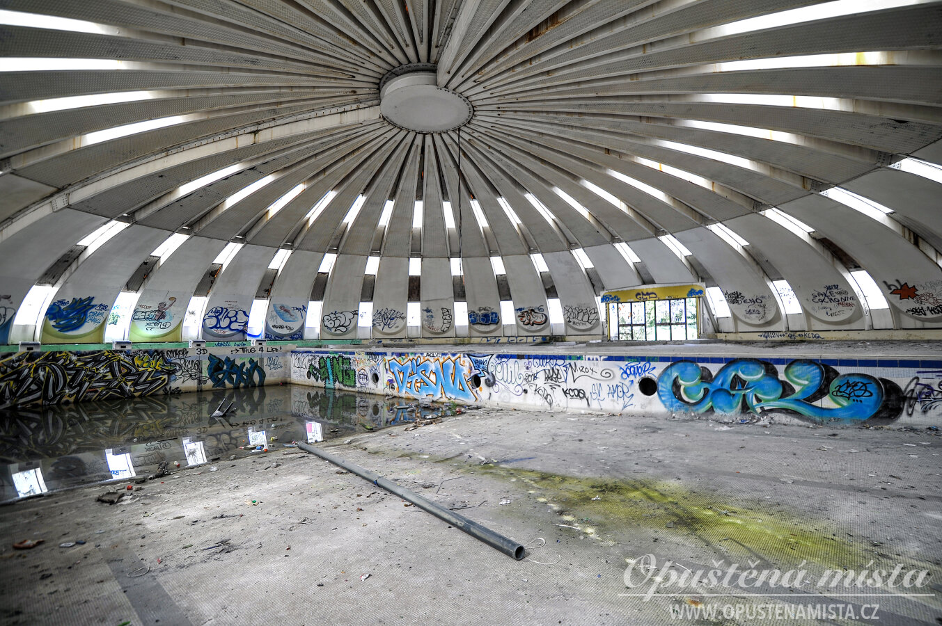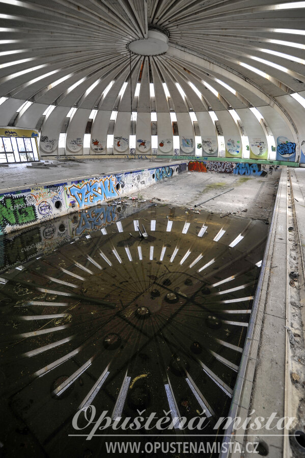 Některé bazény dodnes fungují a jiné zůstaly prázdné. Jedním z těch prázdných a dlouho nevyužívaných je i bazén na fotkách. Namísto plavců a vody je uvnitř už jen záplava graffiti a nepořádku. Přesto to stavbě nijak neuškodilo a stále je vidět zajímavost architektonického řešení. Jen škoda, že kupole již nejde nijak otevřít.