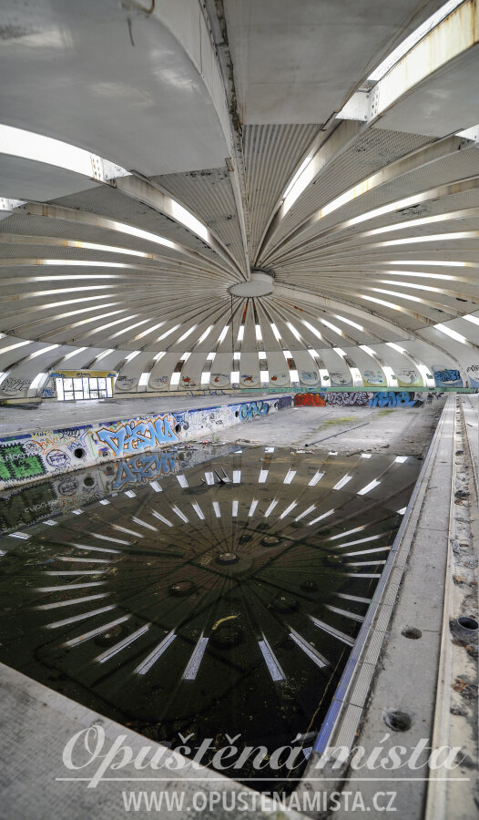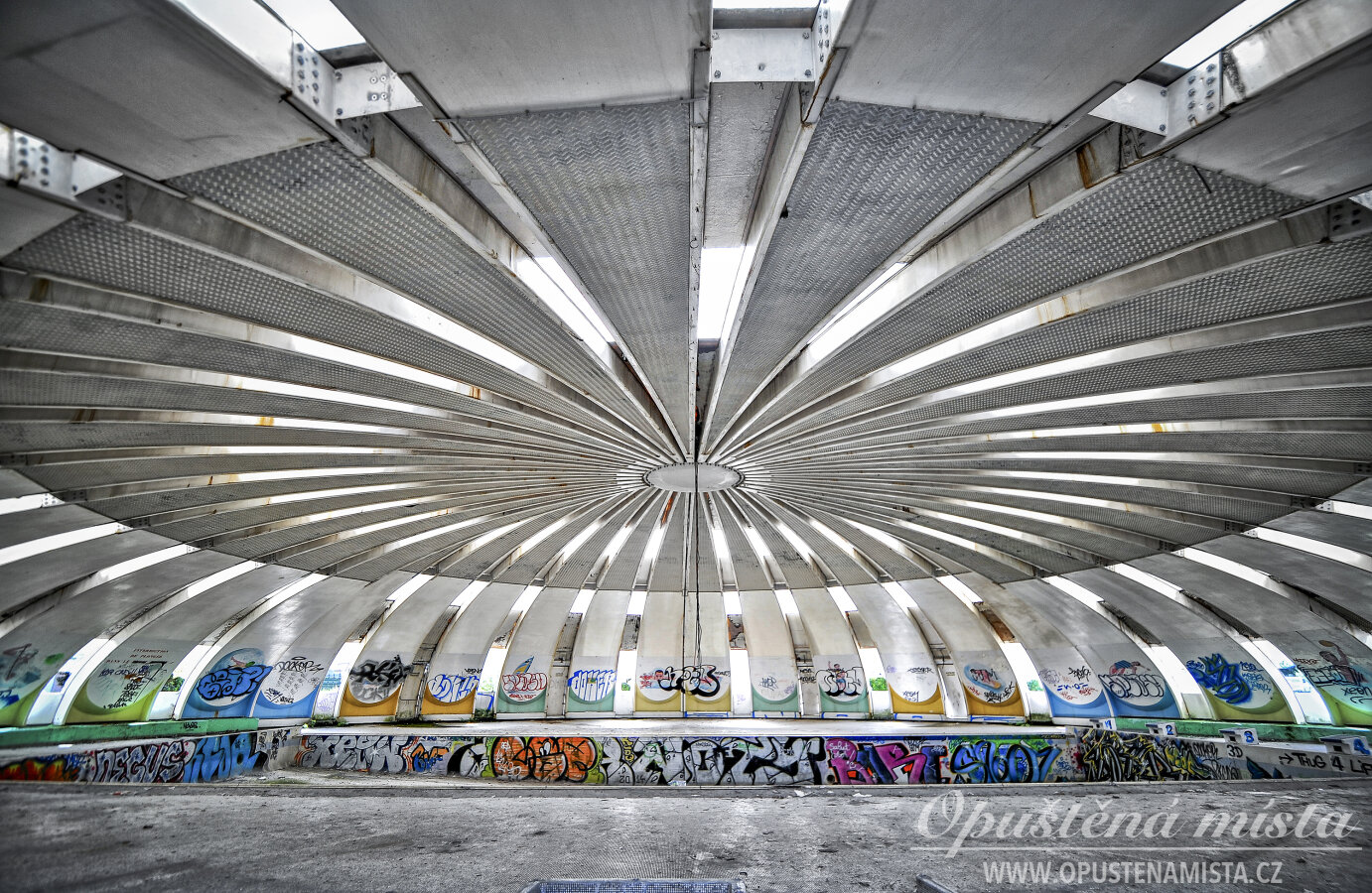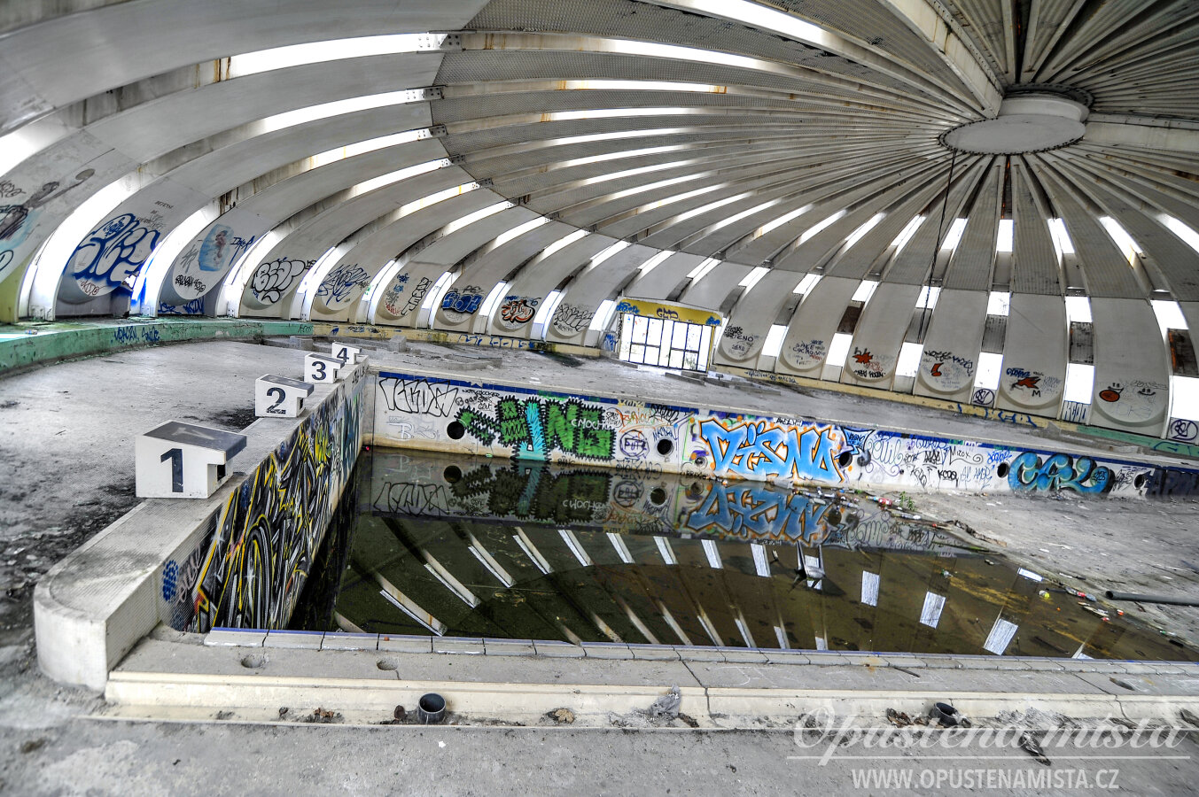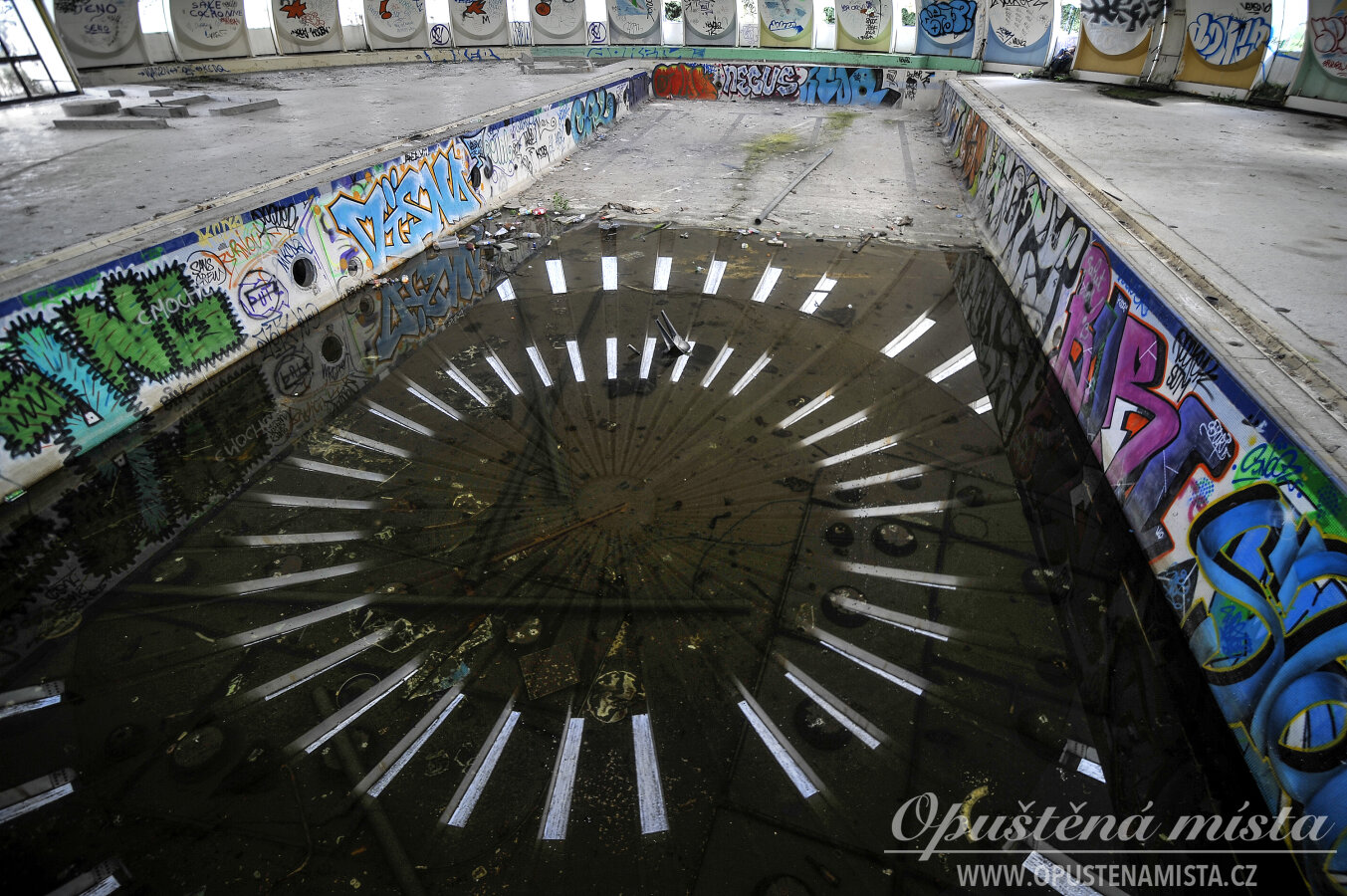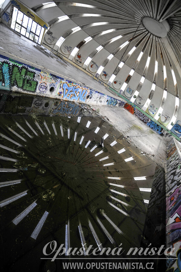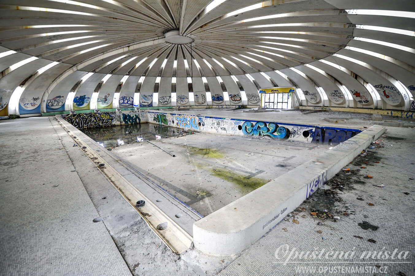 Některé bazény dodnes fungují a jiné zůstaly prázdné. Jedním z těch prázdných a dlouho nevyužívaných je i bazén na fotkách. Namísto plavců a vody je uvnitř už jen záplava graffiti a nepořádku. Přesto to stavbě nijak neuškodilo a stále je vidět zajímavost architektonického řešení. Jen škoda, že kupole již nejde nijak otevřít.