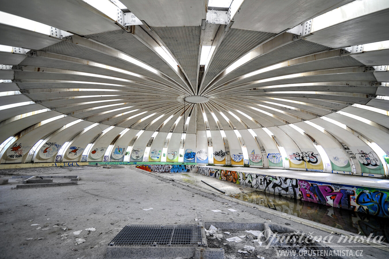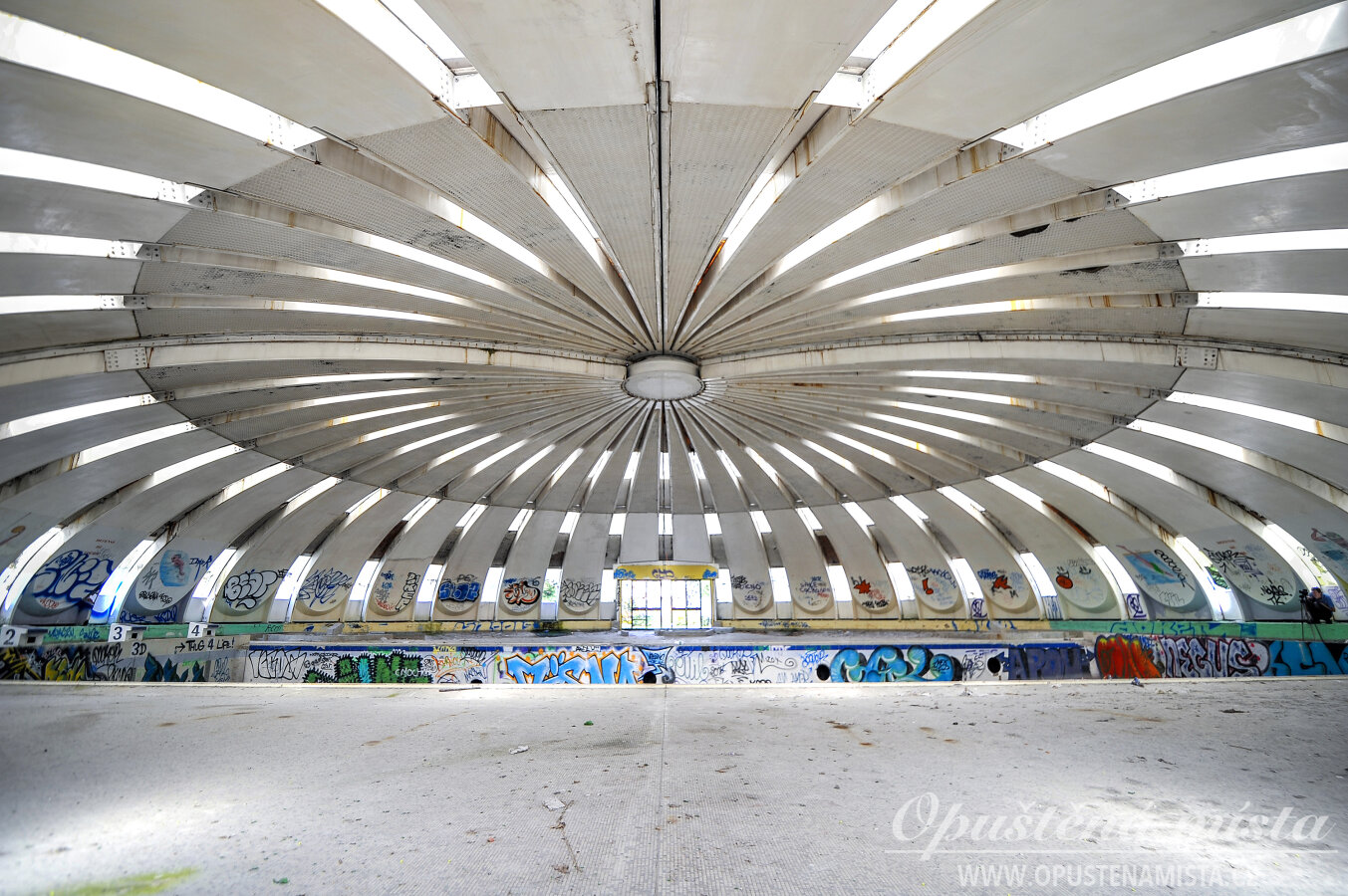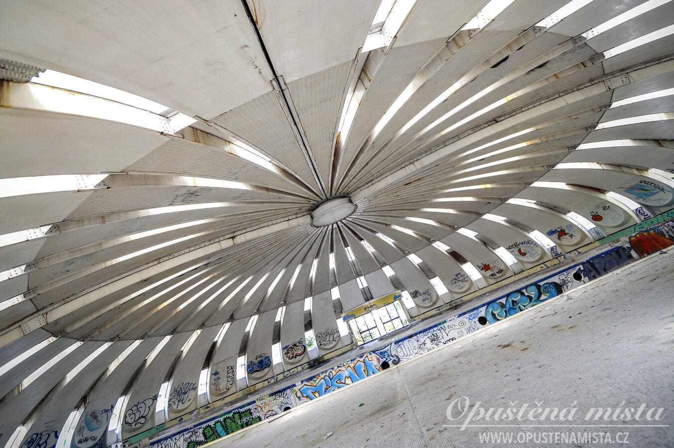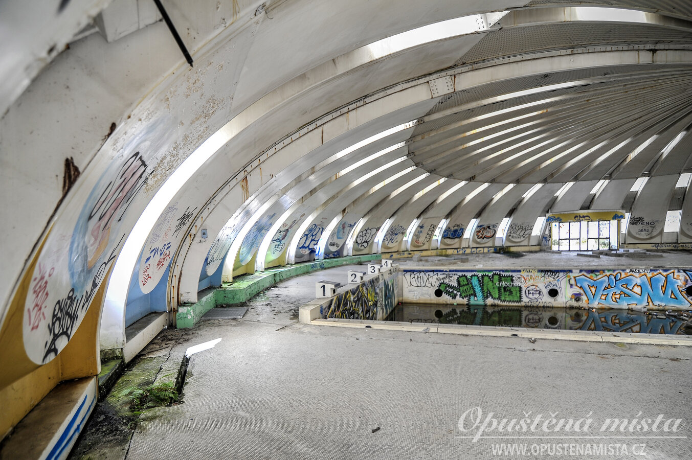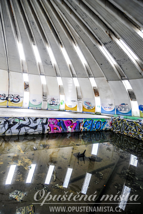 Některé bazény dodnes fungují a jiné zůstaly prázdné. Jedním z těch prázdných a dlouho nevyužívaných je i bazén na fotkách. Namísto plavců a vody je uvnitř už jen záplava graffiti a nepořádku. Přesto to stavbě nijak neuškodilo a stále je vidět zajímavost architektonického řešení. Jen škoda, že kupole již nejde nijak otevřít.